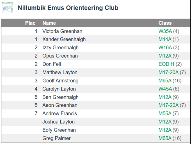 Congratulations to Event Director Helen Edmonds; and Course Controller Laurie Niven for their crucial work … but mostly to ‘Team Emu’ … including newcomers … who made it all work on the day.
